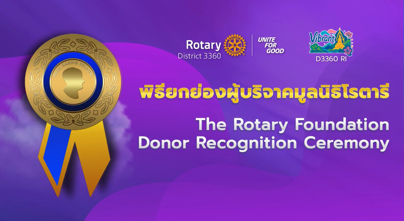 ภาค 3360 โรตารีสากล จัดพิธี The Rotary Foundation Donor Recognition Ceremony 2025 📍ในงาน VCW2025 ที่จังหวัดพิษณุโลก เพื่อแสดงความขอบคุณและยกย่องผู้บริจาคที่ได้มอบน้ำใจอันยิ่งใหญ่แก่ มูลนิธิโรตารี 💙